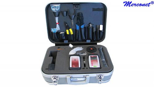 Deze gereedschap&Test set bevat alles wat nodig is voor installateurs en technici van fiber optische kabels. Deze set bevat gereedschappen voor het monteren en polijsten van SC, ST en FC connectoren, een glasvezel oven, een microscoop voor het inspecteren van de connectoren, een optische meter en een optische zender. Deze testset bevat de volgende producten: