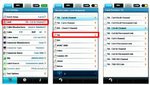 Certification Testing: TIA 568-C.2 CAT 5e, 6, 6A, draft CAT 8