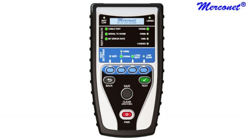 The AND7 set is for testing and measuring ethernet connections in order to determine the speed capability of individual CAT 5/6 links within installed LAN network systems. With the push of a button the AND7 set automatically measures key metrics like Signal to Noise Ratio and Skew as well as generating a Bit Error Rate Test (BERT) that data packets for transmission and receiving along a link to see both error generation and/or noise interference effects that may impede data flow at the highest possible level.